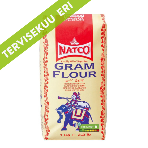 Kikerhernejahu Superfine 1kg. 100% puhas kikerherne jahu. Seda kasutatakse friteerimistaigna sees, küpsetistes ja dessertides. Gram jahu on eriti levinud India köögis, kus sellest valmistatakse friteeritud köögivilja snäkke (bhajia, pakora) ja erinevaid desserte. Kikerhernejahu on gluteenivaba ja sobilik ka veganitele. Vaata ka 2 kg pakendis kikerhernejahu.
