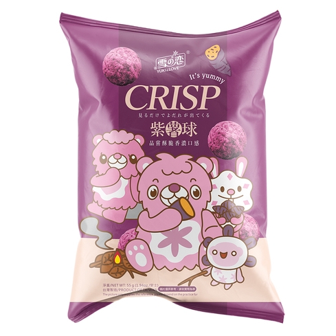 Koostisosad: mais 33,3%, kuivatatud lilla jamss 31,9%, suhkur, palmiõli, vesi, lilla bataadi pulber 4%, palmituumaõli, lõhna- ja maitseained, vanilli maitseaine. Võib sisaldada pähklite, muna, maapähklite, seesamiseemnete, teravilja (gluteen), piima (laktoos), ja sojaubade jälgi.